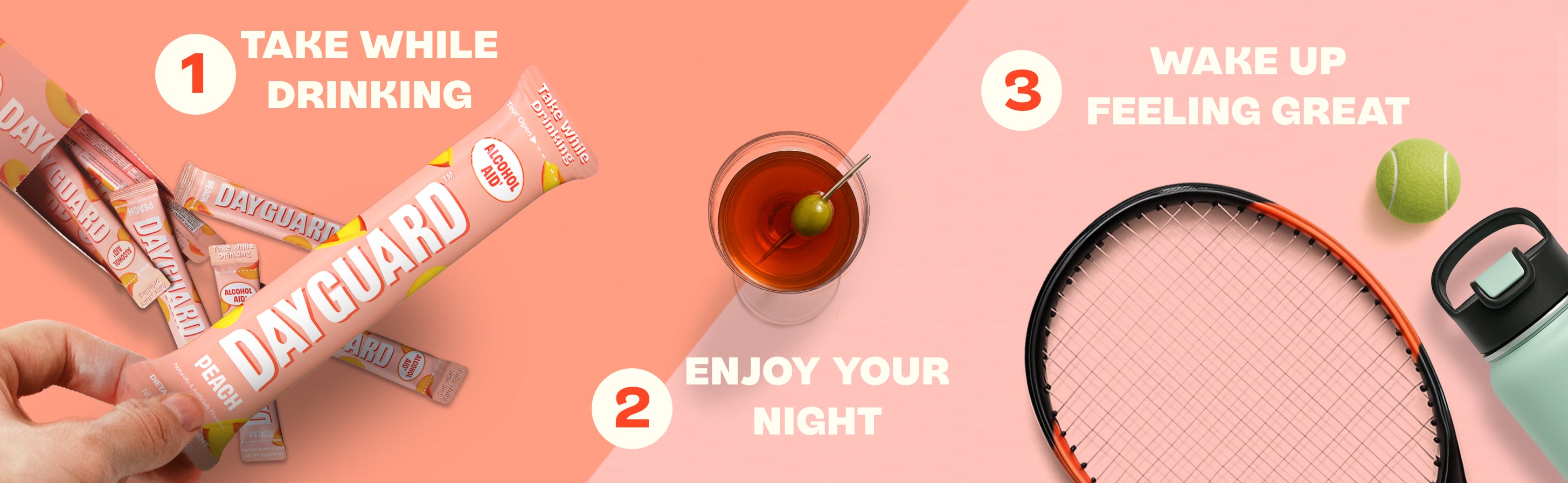DAYGUARD is formulated with a science-backed blend of natural extracts and amino acids that work together to support your body’s ability to break down alcohol and reduce next-day sluggishness: